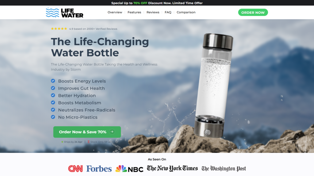 All content and information found on this page regarding the LifeWater Hydrogen Bottle are for informational purposes only and are not intended to diagnose, treat, cure or prevent any disease. The FDA hasn’t evaluated the statements provided on this page. Make sure you consult with a licensed doctor before using any health-related device or making any changes to your wellness routine. Individual results may vary.