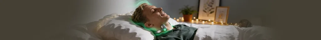 The primary evening use case for VagusX is the resolution of “hyper-arousal”—the mental and physical inability to shift into a restful state despite exhaustion. By targeting the parasympathetic pathway, VagusX facilitates the physiological conditions (reduced heart rate, settled arousal) required for natural sleep onset. Note: VagusX is a wellness adjunct, not a sedative or a treatment for clinical sleep apnea or circadian disorders.